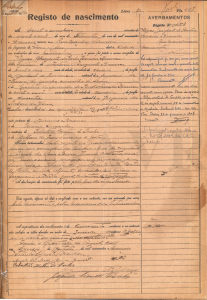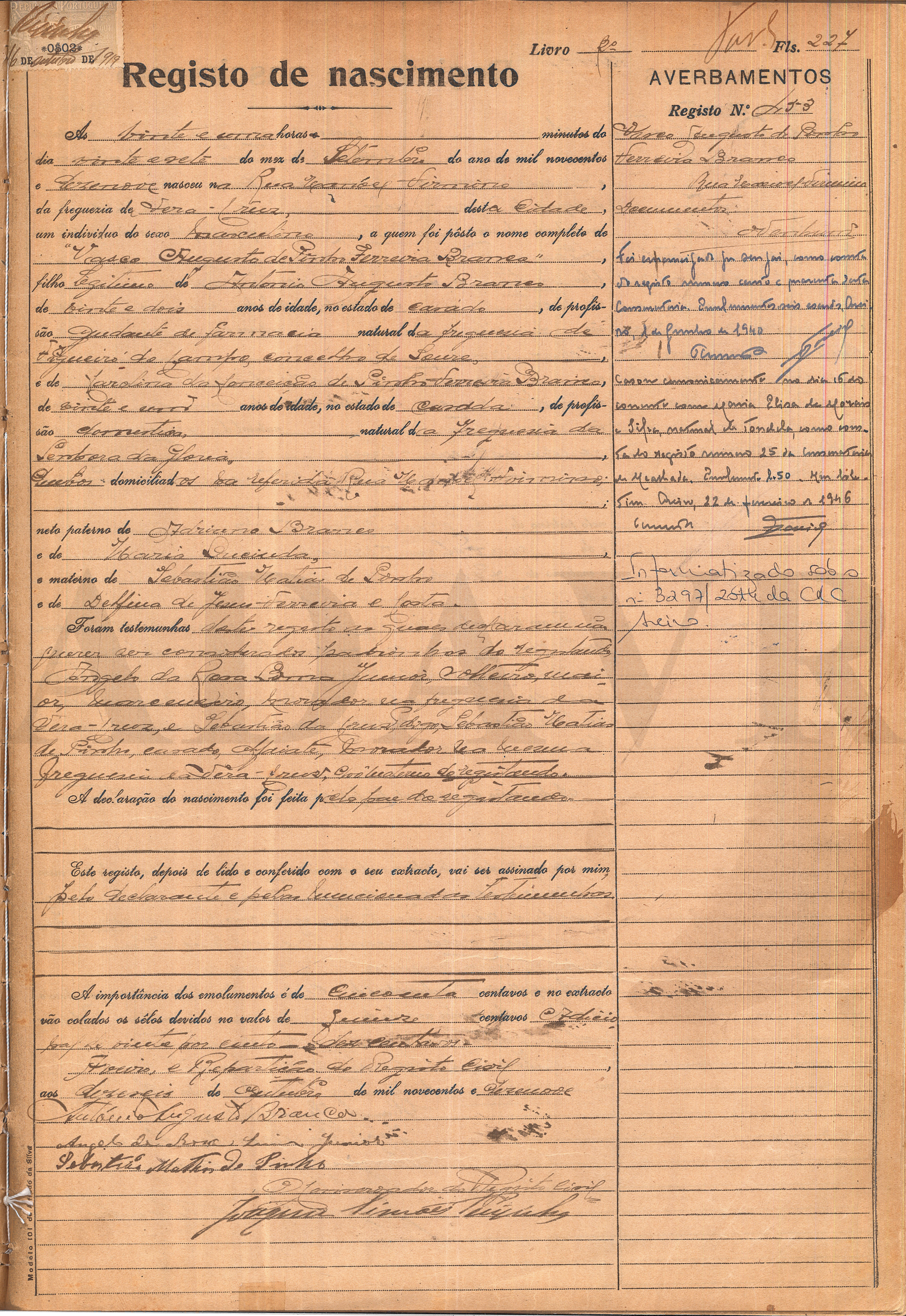 Registo de nascimento de Vasco Ferreira Branco (1919-2014)